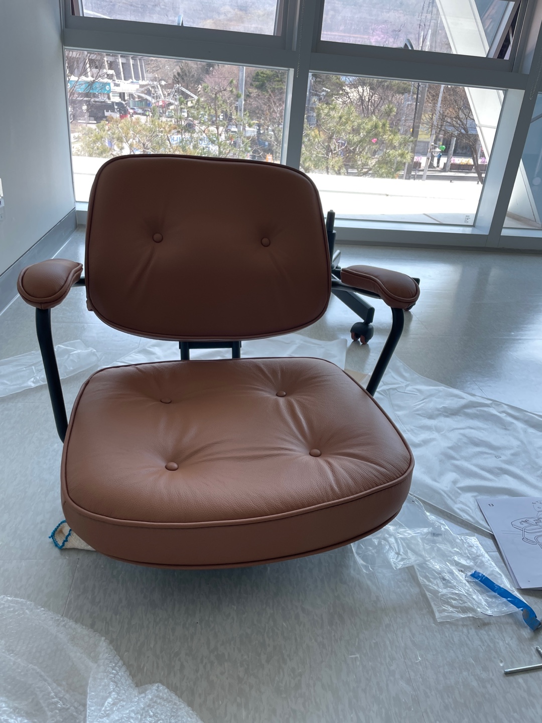 사무실 가구가 온통 흰색이라서 포인트도 줄 겸 주장이 강한 브라운 의자로 결정했습니다.